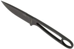 The ESEE Izula Tactical Gunsmoke is named after an aggressive ant from the Peruvian jungle. This is to emphasize that despite its size you shouldn’t underestimate this knife. The ESEE Izula is a versatile fixed knife. It will easily find a place in a bag or backpack or can be carried as a neck knife. Despite its size you can easily hold it. At the back you will find a large opening for your little finger to make sure you have an excellent grip. You could, of course, also make a paracord handle to increase the grip. And if you prefer a real handle ESEE also delivers those as an accessory. This, of course, will make the knife a little thicker.