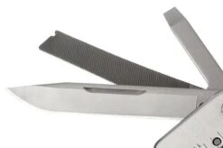 Stainless steel multi-tool with pliers, 2 blades and a wide range of tools for everyday use. The wire cutters in the pliers are removable, allowing you to replace them or resharpen them safely and easily. It features a unique locking mechanism that guarantees safety at all times.
